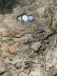 We were out hiking one day last spring when I decided to rest on a large boulder while the boys played in a nearby stream. As I got ready to sit down, I noticed some formations in the rock, pictured below. I was certain that I had come across some fossils, but in fact they were Liesegang bands, which form when iron in the water diffuses through a porous rocks, like the sandstone boulder I was about to sit on. In this instance, the ferrous oxide has been deposited along the fractures in the stone to give it a sort of honeycomb appearance. The last picture was set as my desktop image for a few months.