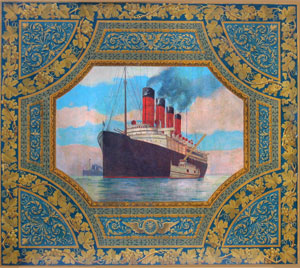 Whatever the nature of their attachment, it is clear that Butt and Millet were close. Millet was himself also a significant figure in his day, and many of his paintings and large-scale murals still are to be found in American buildings. The image to the left is from a series in the Federal Courthouse in Cleveland, originally created for the Post Office, that depict scenes of postal delivery. Its title is “Foreign Mail Transfer, New York Harbor,” and was completed in 1911. The paint on it was hardly dry when Millet boarded the Titanic, together with Butt, headed for New York but never to arrive.