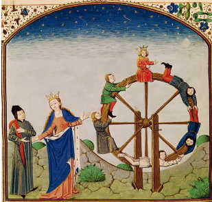 In the Medieval Latin class I’m teaching this term, we’re now reading Boethius’ Consolation of Philosophy. (If you’ve not read it before, stop wasting time on-line and read it now.) The Consolatio is partially written in prose, partially in verse, and offers a genuinely comforting framework within which to view adversity. It was written when Boethius, who had been at the very highest realms of influence, was unjustly imprisoned; not long after he would be mercilessly killed. I’ve asked my students to try to turn the verse portions into English poetry, and one of them demanded that I do the same. Talk about a reversal of fortune! My laughable effort is below, with the original Latin following. It’s not the entirety of the poem, only the first part, and it gets a little free at the end, but I think the Boethian idea of Fortuna’s fickleness comes through.