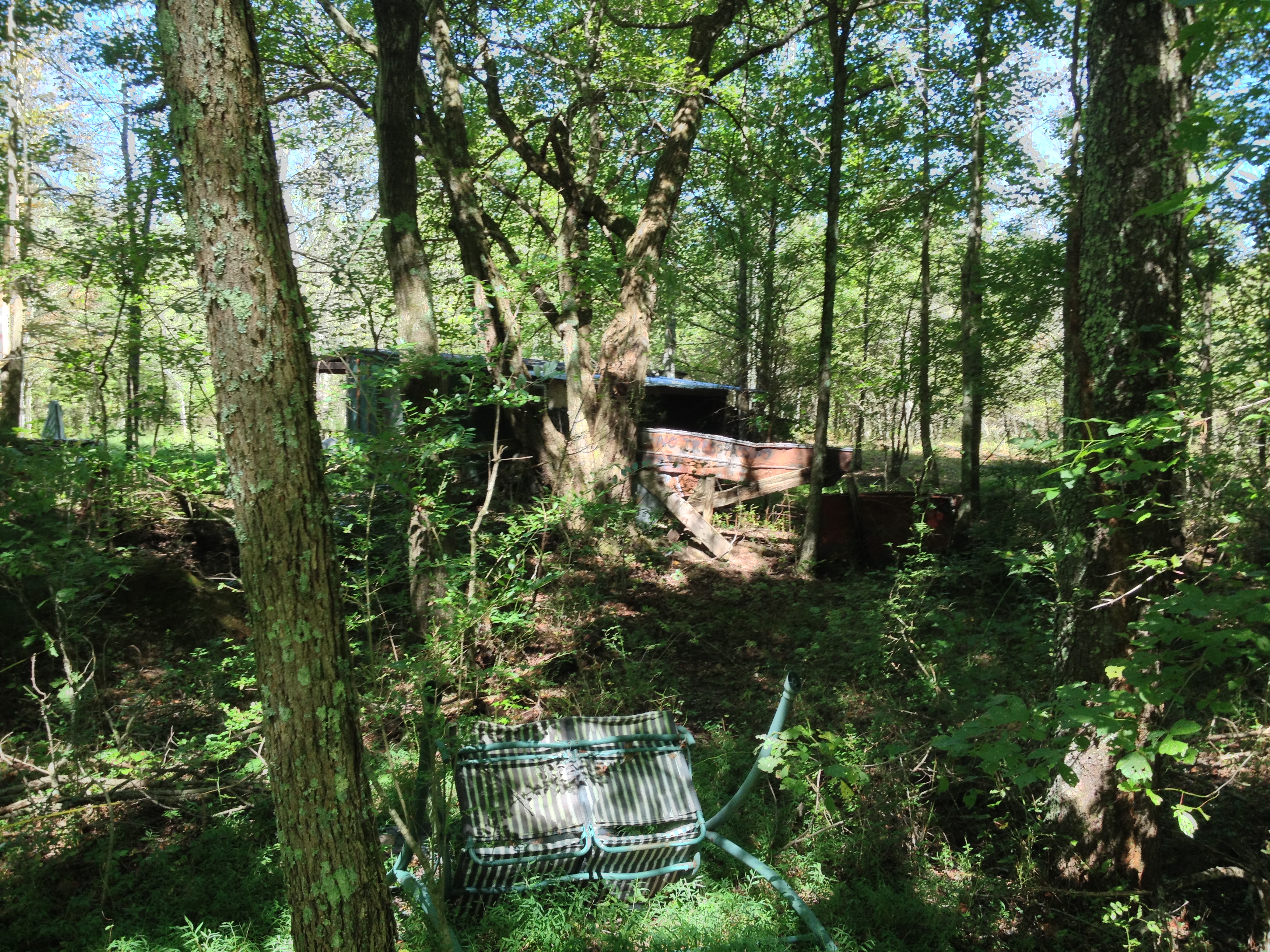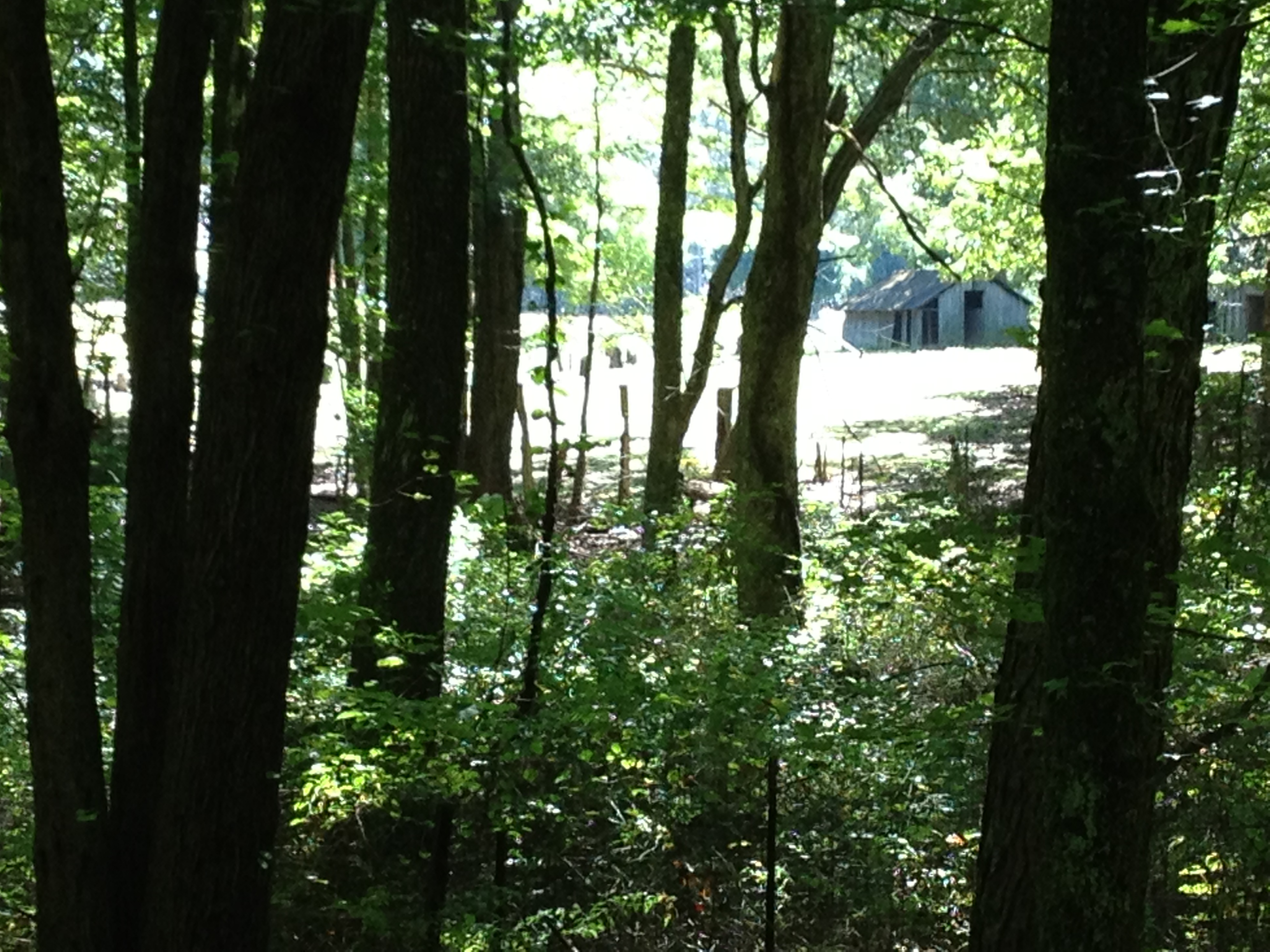 Another lovely farmhouse seen through the woods, and a reminder that this was in fact an old railroad bed.