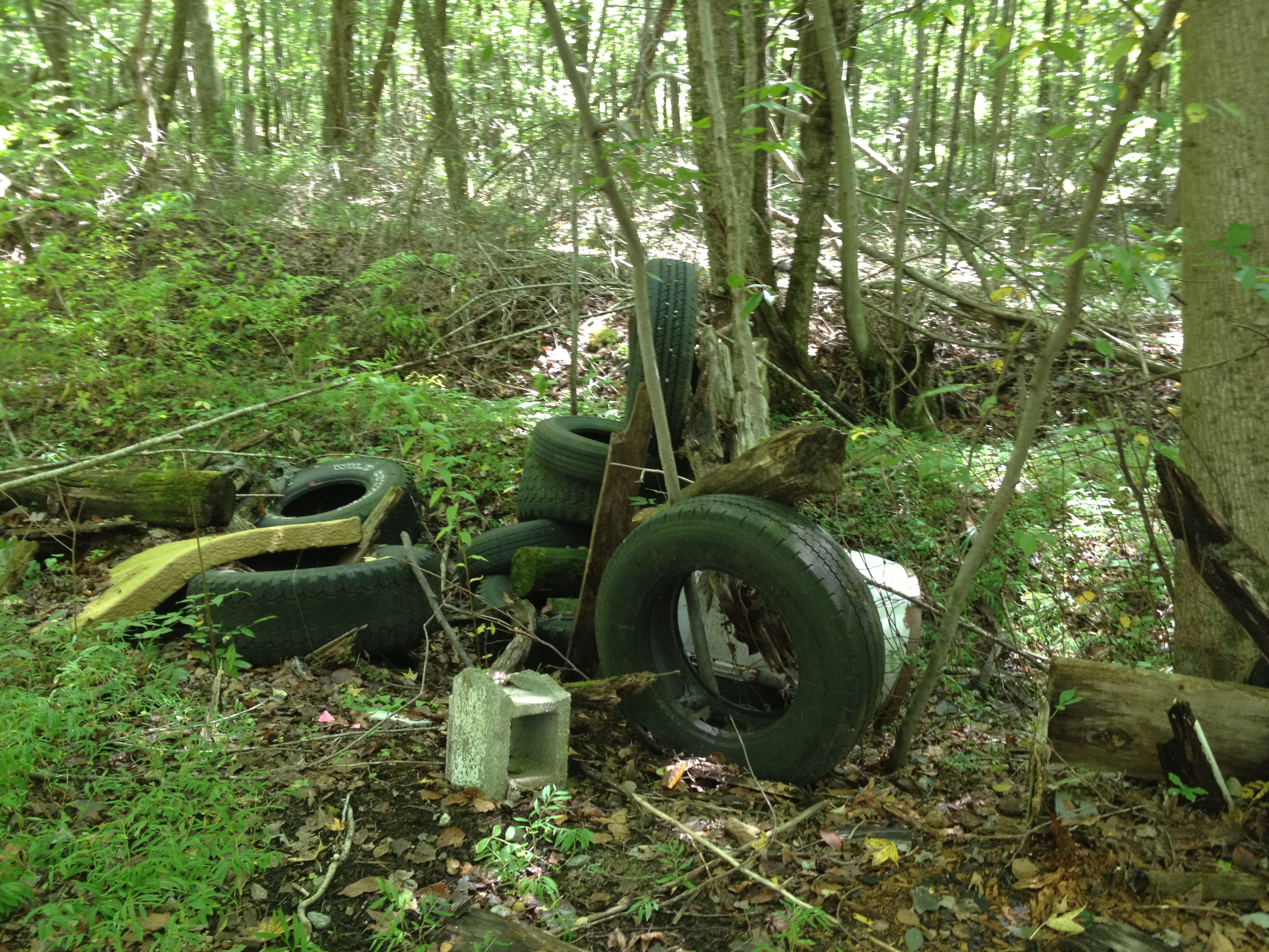 This is the end of the Mountain Goat Trail, at least for now. Ahead you can see houses that are at the corner of 41A and Midway Road. I’m not going to try to go through the chiggery high grass, or over that fallen tree ahead. But in the coming months, it will be fun to see what comes of the rest of the trail.