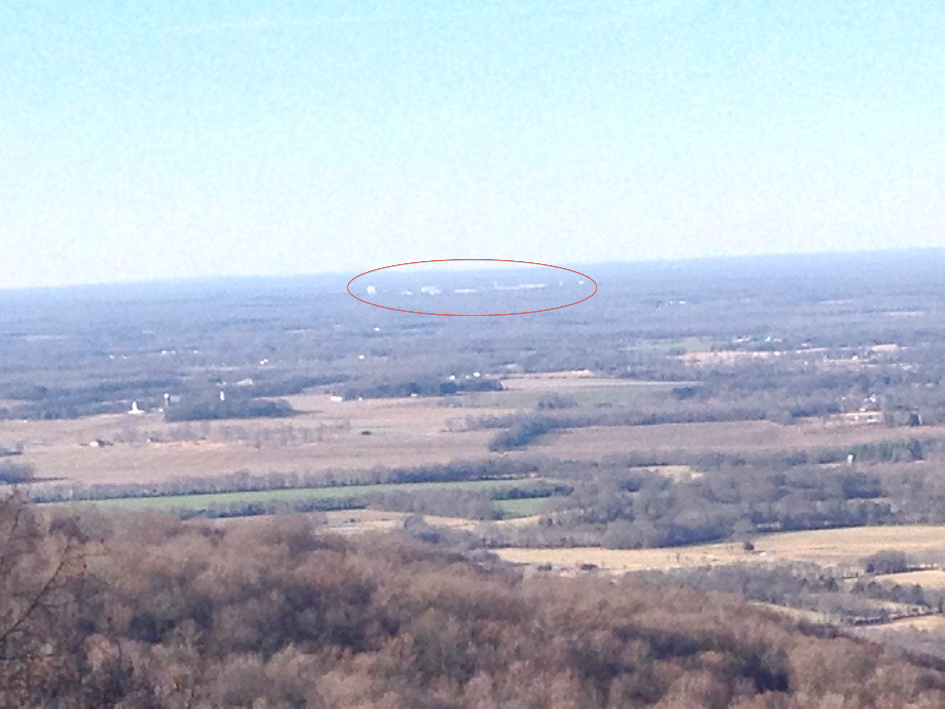 I am pretty sure what’s pictured in the red ellipse is not the Nissan plant, but rather part of the Arnold Engineering installation at the air force base. The Nissan plant is not visible from Green’s view.