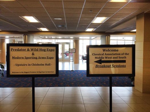 1901931_10100675630033907_814205936453584805_nSo, this past weekend, the Classical Association of the Middle West and South conference was sharing space at the Waco Convention Center with the Predator & Wild Hog Expo and the Modern Sporting Arms Expo. It made for an unlikely but interesting combination of conventioneers. After listening to a panel on the nuances of Roman love elegy, I made my way over to the exhibition floor.