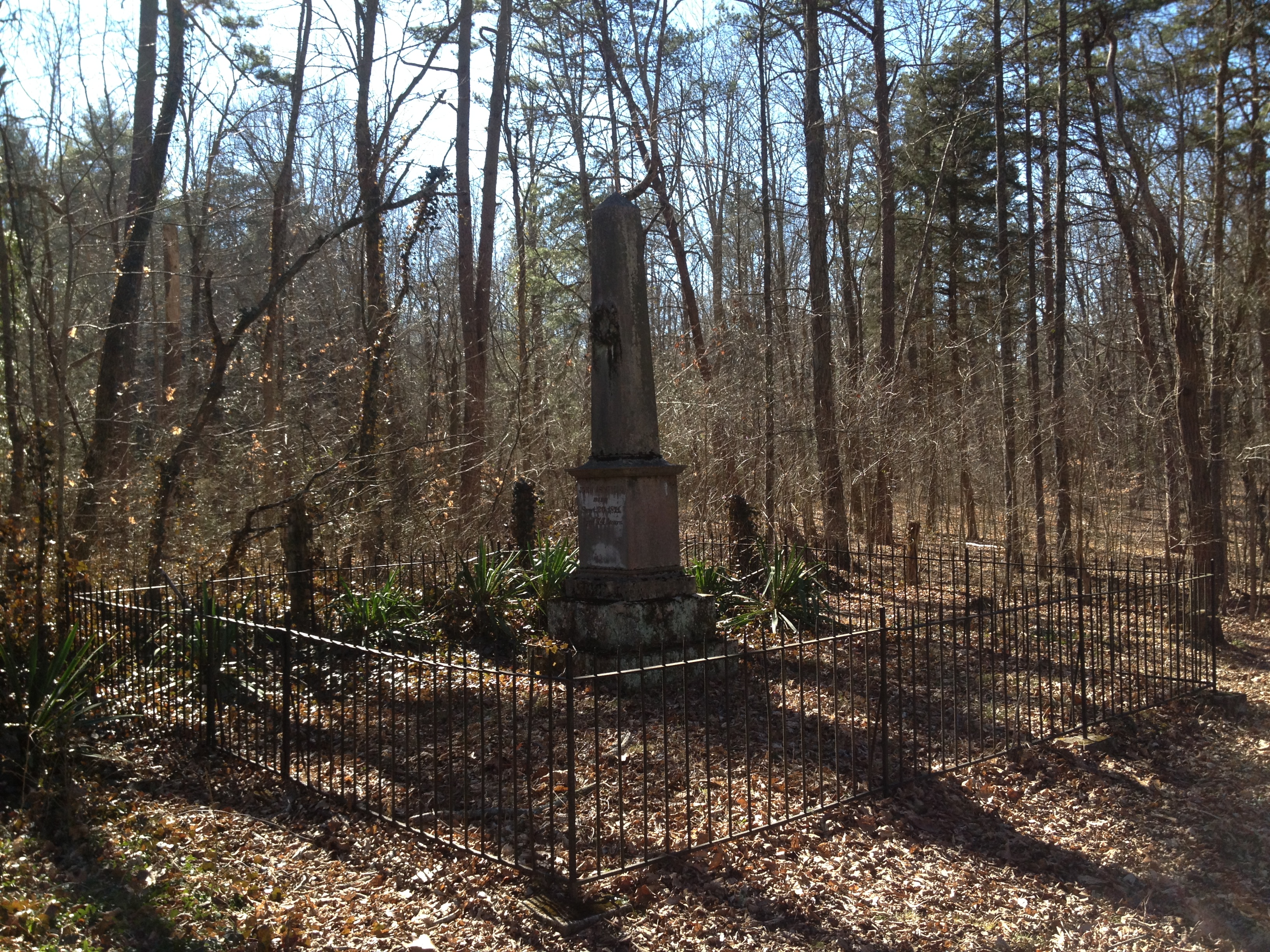 The graveyard dates to 1871 and, on a sunny February afternoon, the old trees, leaf litter, and ironwork gates give the place a certain Victorian Gothic charm.  Across the street are modest, old-fashioned homes which, being built on the bluff, have a commanding view off the plateau into the Savage Gulf State Park. The most prominent monument in the cemetery is that for John Armfield, below.