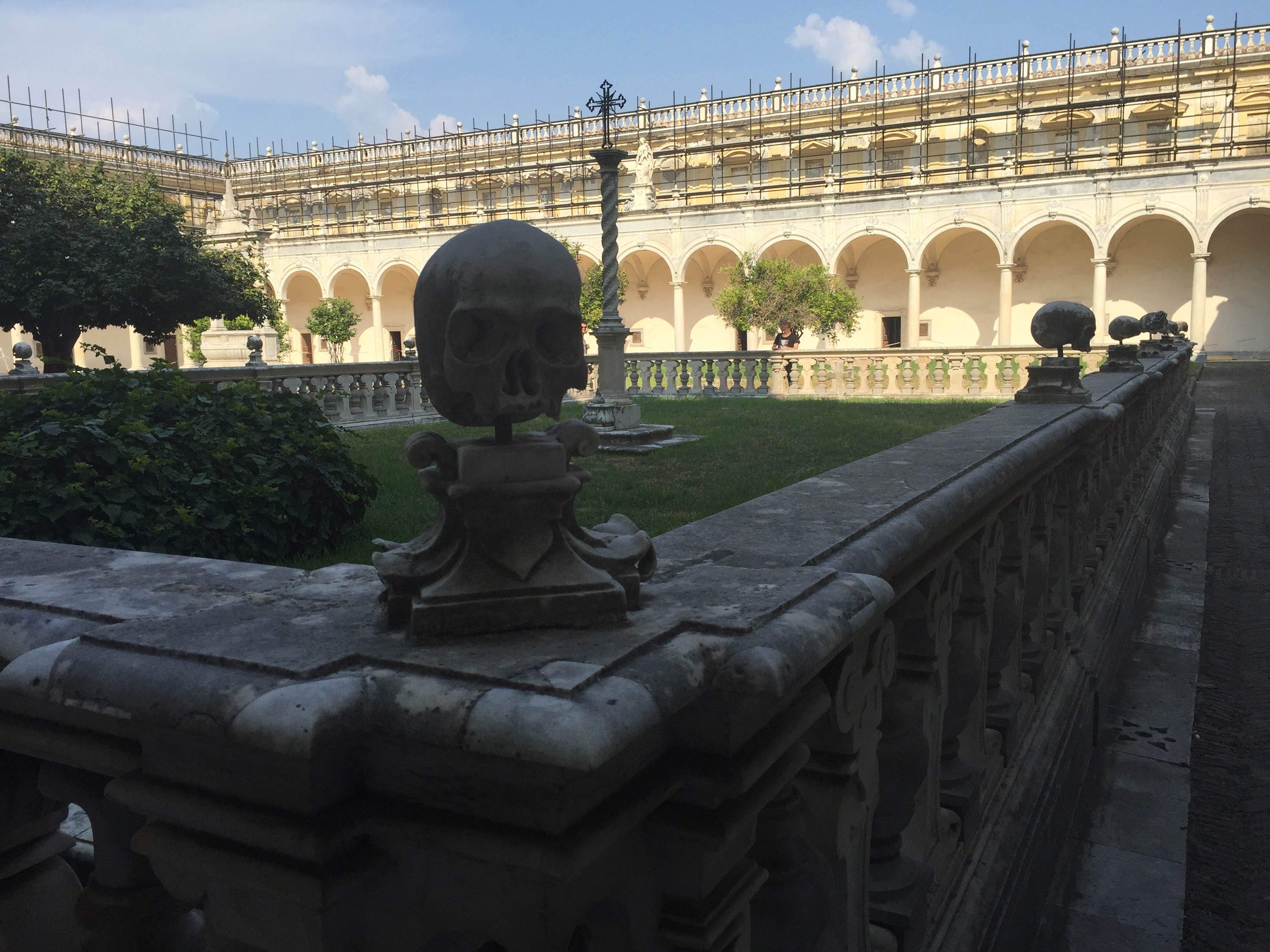 We made our way down by foot through some very gritty narrow Neapolitan streets into the Rione Sanita, only to discover the church and catacombs were closed! We wandere around and miraculously came across a little bus that eas going to Piazza Cavour, where we took the train to Montesanto in order to get the funicular up to see the Certosa di San Martino, high above the city.