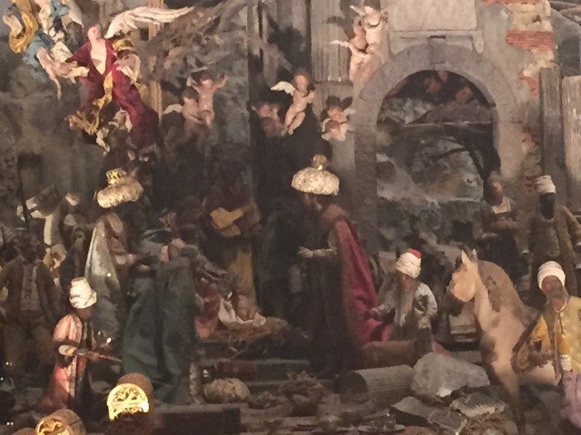 The Certosa was formally a Carthusian monastery, then a palace, and now a museum . “There’s something here for everyone, ” says my new Sewanee colleague, Jackie. She’s right– the orbste church, the largest collection of mangers in the world, art, a naval museum, and aview to die for, though the cats are bored with it.