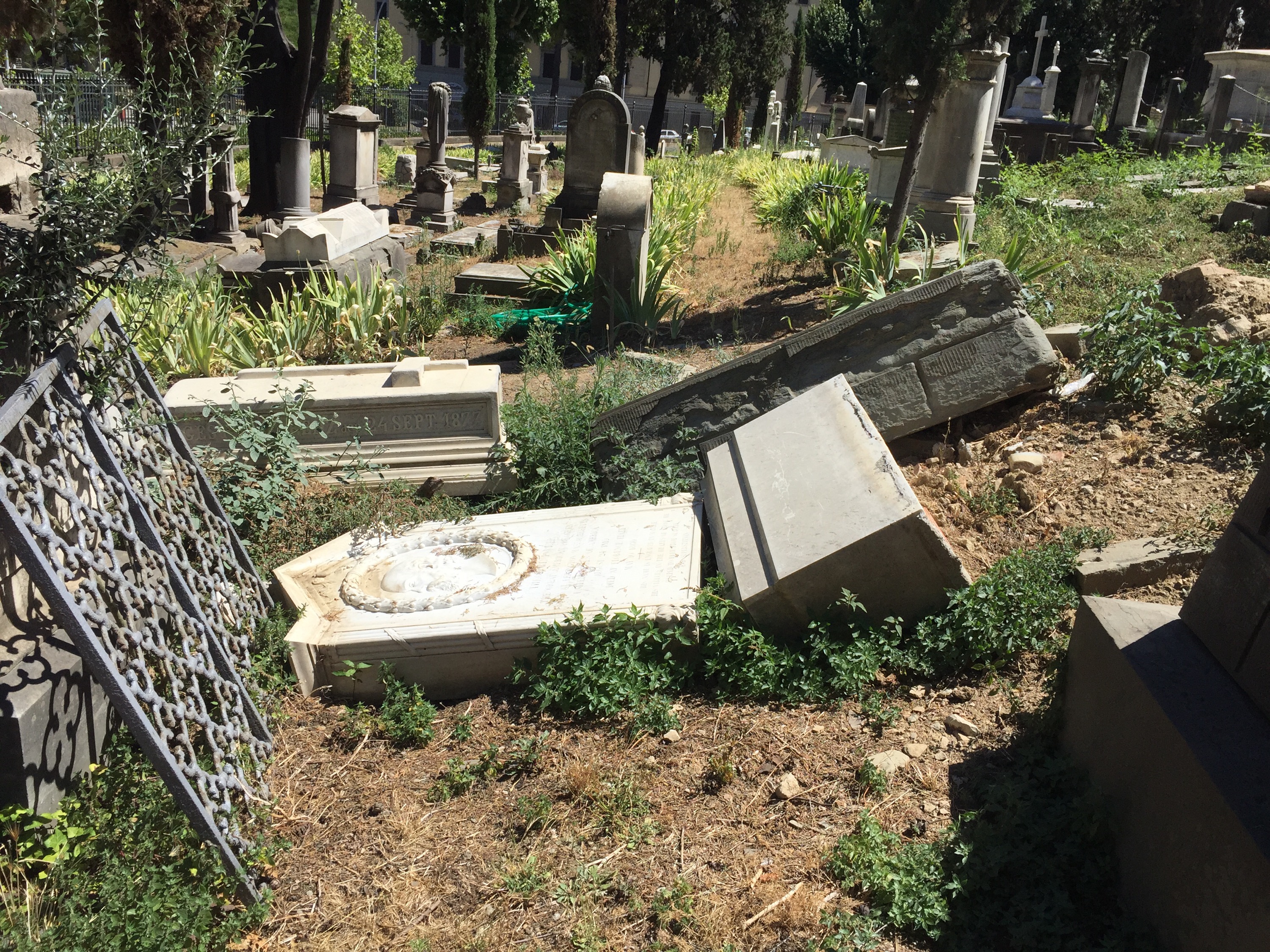 I thought, while I was in Florence, I should go and have a look at his tomb, if only to pay homage to a great man who did so much to make our own age a little more just. So, earlier today, just after spending time at the Museo Archeologico, over to Piazzale Donatello I went. The main-door of the cemetery was slightly ajar, so I let myself in. In fact, there is a pretty good website kept for the Cimitero Inglese by another Anglo-American ex-pat, Julia Bolton Holloway, so Parker’s grave was not hard to find. What I found, however, was really quite shocking.