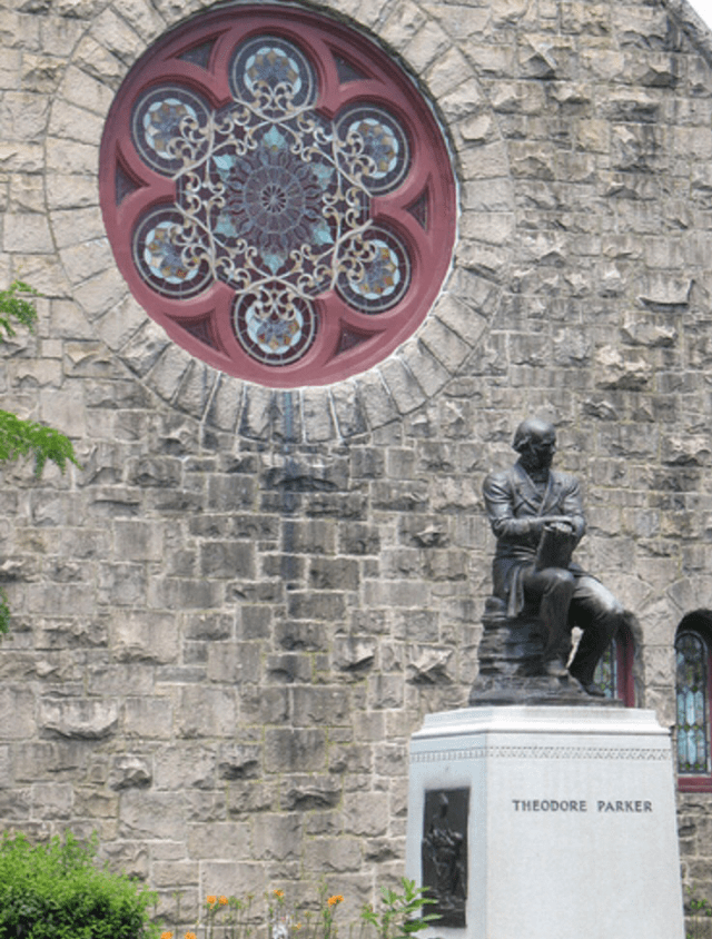 Among everyone I knew in West Roxbury, Parker was a great unknown. Tha tells you a lot about the characer of the neighborhood, which had become largely Catholic as the 20th century progressed–we knew nothing about the large stone Protestant churches in the vicinity. Still, Parker’s name is not so well known in our time, which is too bad because in his own day, he was a giant. A forceful opponent of slavery, he preached fiery sermons that electrified the abolitionist movement. Parker’s way with words influenced both the Gettysburg Address (it was Parker who has coined the phrase “of the people, by the people, and for the people”) as well as Martin Luther King, Jr. (again, Parker first said, “I do not pretend to understand the moral universe; the arc is a long one, … And from what I see I am sure it bends towards justice”).