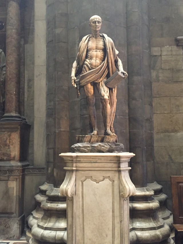 One of the the main sights inside is Marco d’Agrate’s gruesome statue of St. Bartholomew, who was flayed in his martyrdom.
