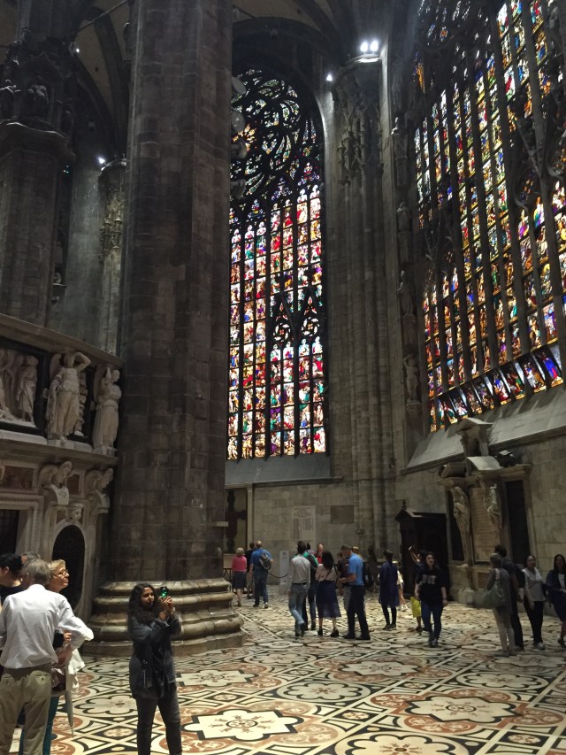 It’s an astounding place, it’s white marble exterior covered with sculpture, and its interior blazing with color from the enormous stained glass windows.