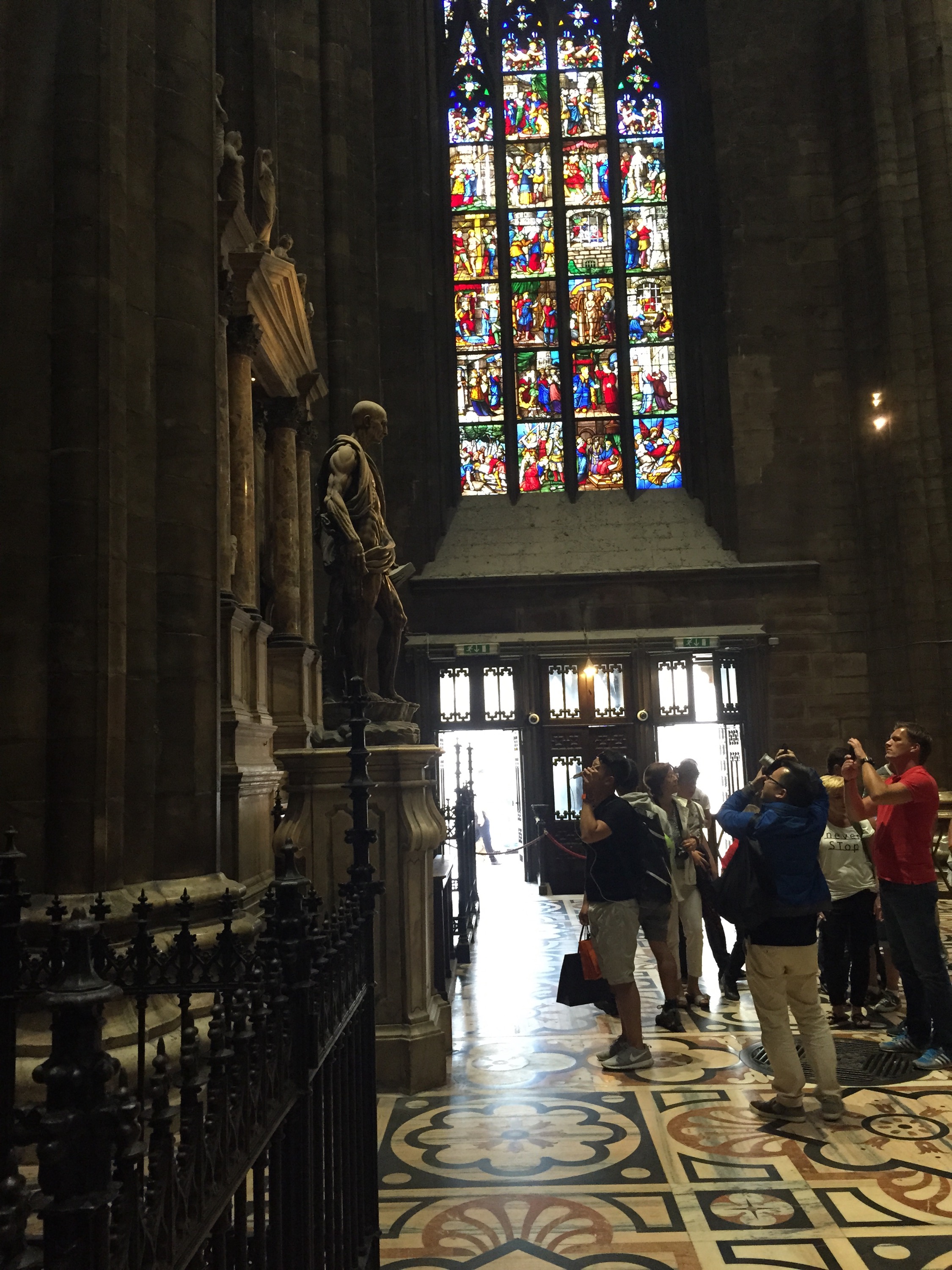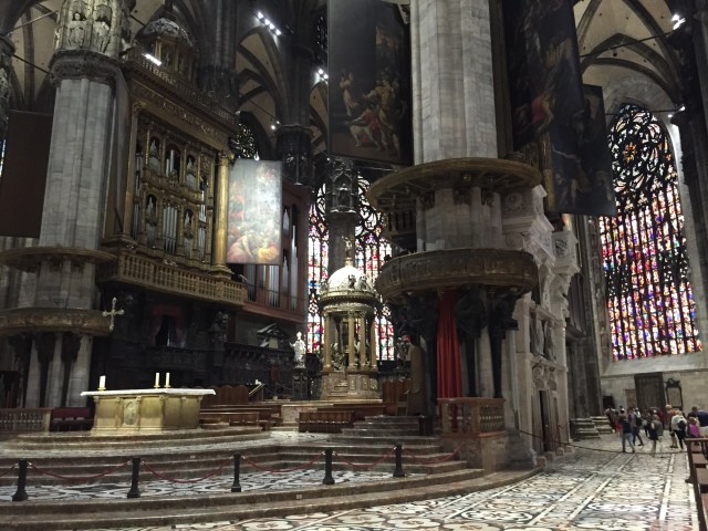It’s an astounding place, it’s white marble exterior covered with sculpture, and its interior blazing with color from the enormous stained glass windows.