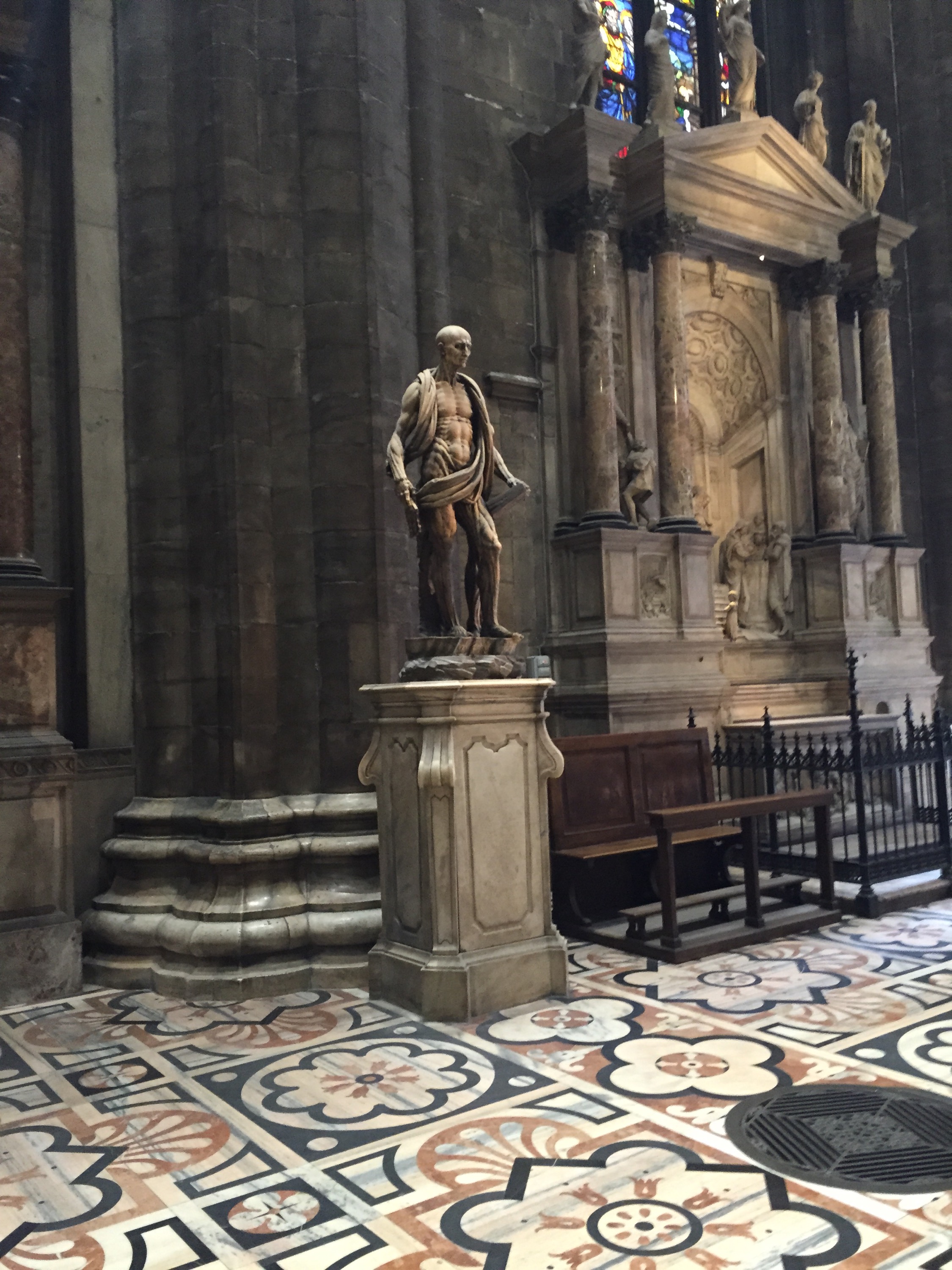One of the the main sights inside is Marco d’Agrate’s gruesome statue of St. Bartholomew, who was flayed in his martyrdom.