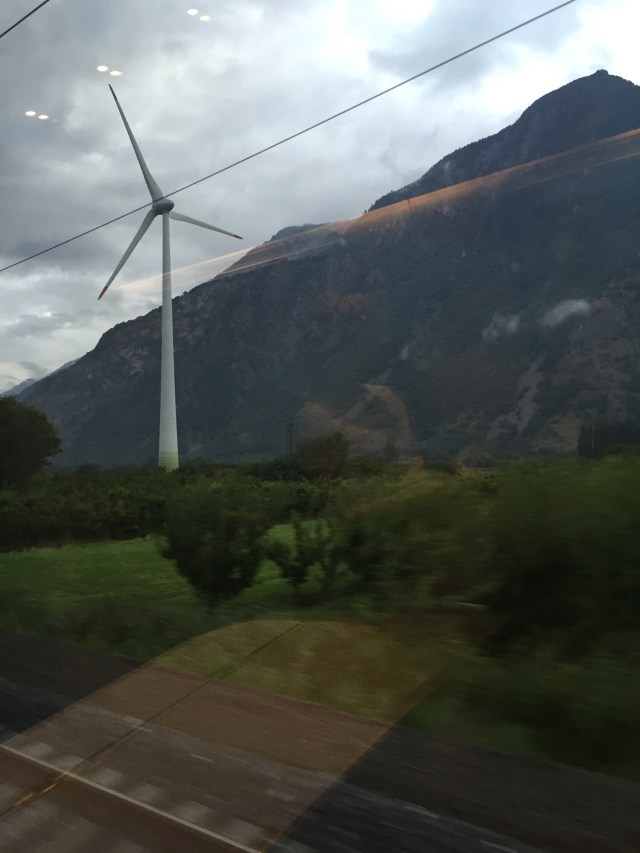 Eventually, the train leaves the lake behind, and through a narrow path makes its way though the mountainous terrain, more heavily covered with factories. We come to Domodossola, the furthest point north in this part of the country. In the olden days, you had to go over the Alps here via the Simplon Pass. Now you pass through the Simplon Tunnel beneath, with nothing to be seen from the window but the reflection of your trainmates across the aisle. Once through, you emerge in the Swiss town of Brig, where all the signs in the station are auf Deutsch. A new conductor comes aboard and asks for my ticket, first in German, then Italian, then English. I look again in my wallet for the ticket, where I have no more Euros, only francs now. Ciao, Italia! Guten Tag, Schweiz!