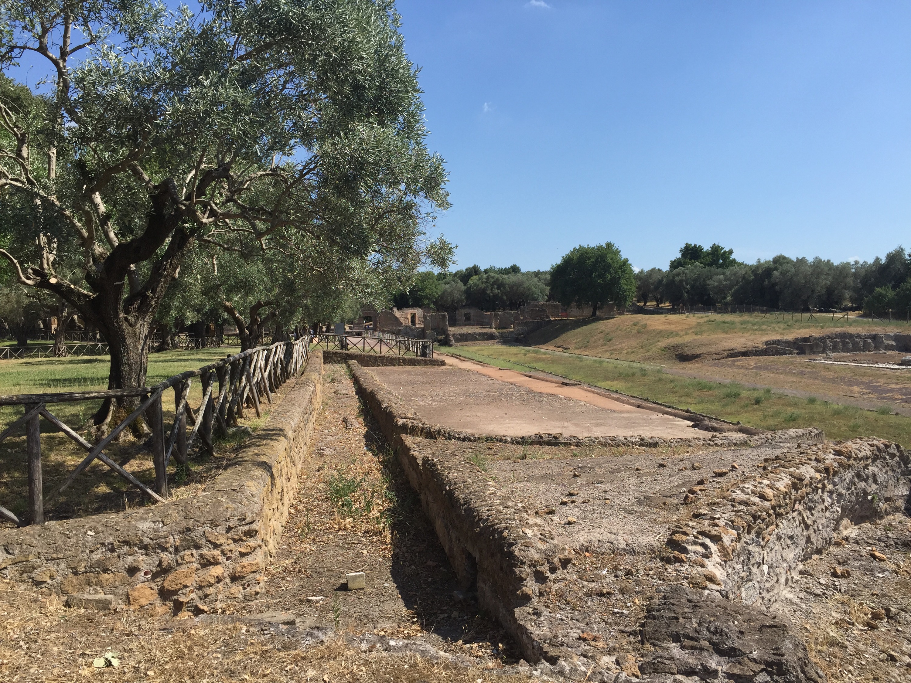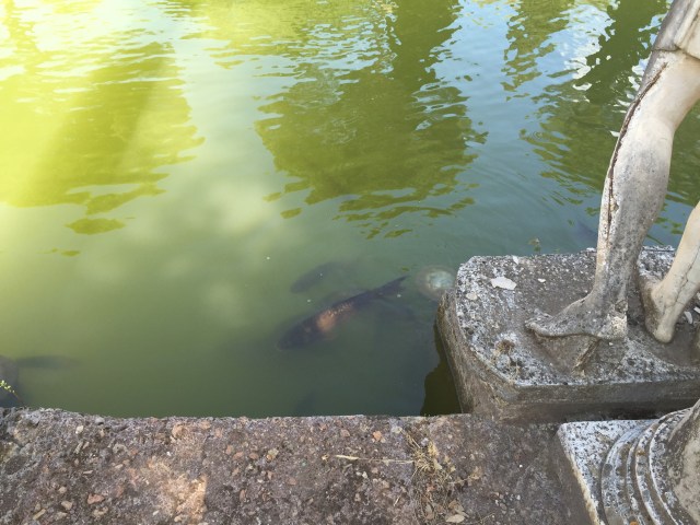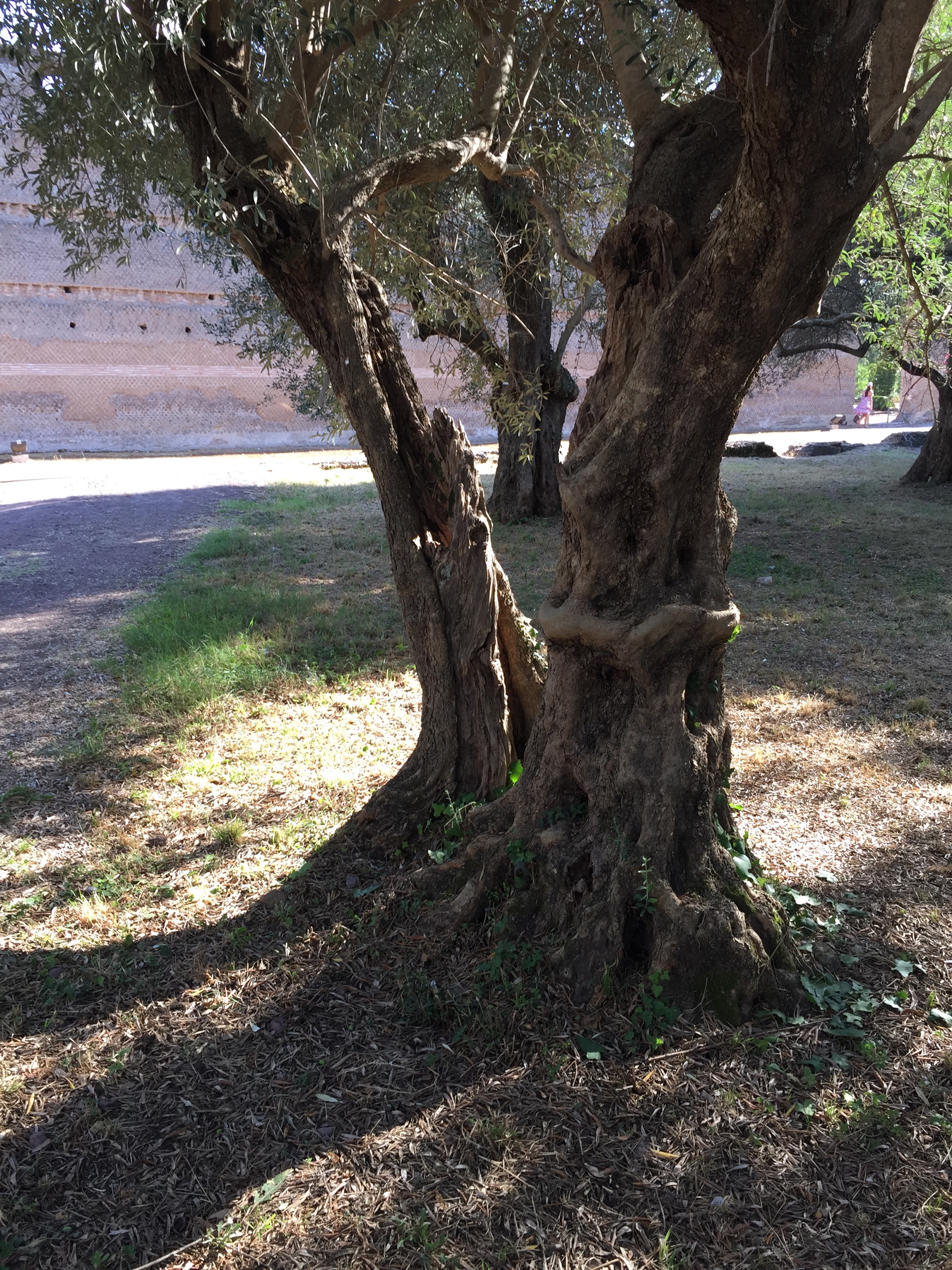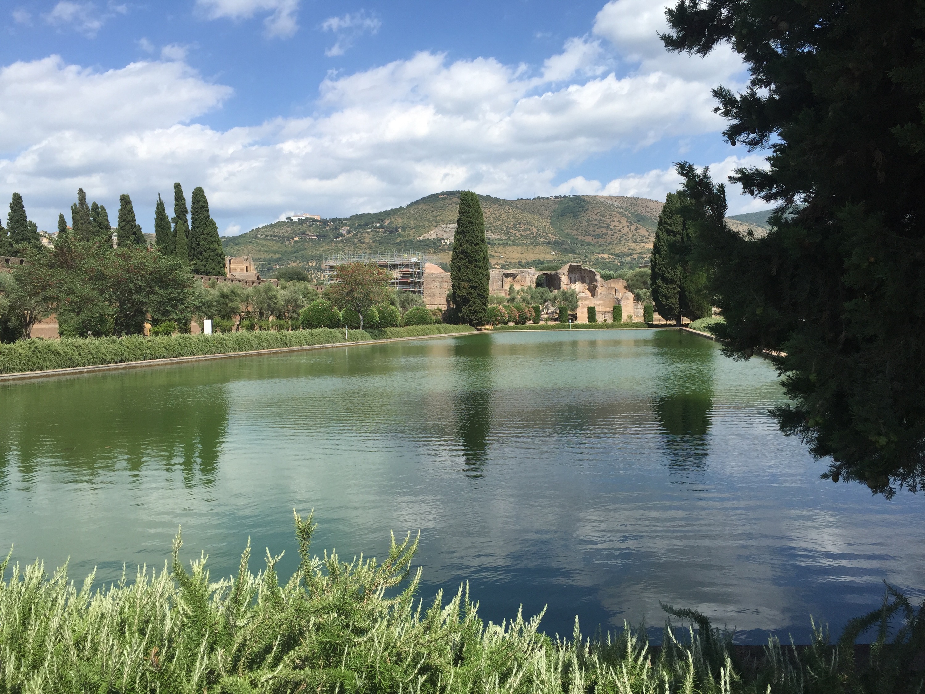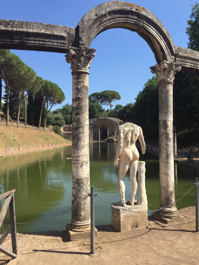 I’m sure it was just as hot in Hadrian’s day, and in my search for shade I begin to really look at the trees throughout the Villa– the umbrella pines, the long rows of cypresses, and most impressively, the twisted ancient olives, that have seen far worse weather and far more of it than I ever will. They say there’s an oliver here over a thousand years old, and I believe it. Some of them will be here a thousand years hence, as will be the carp, the cats, and the turtles, no doubt, and perhaps even the children led along by doting parents.