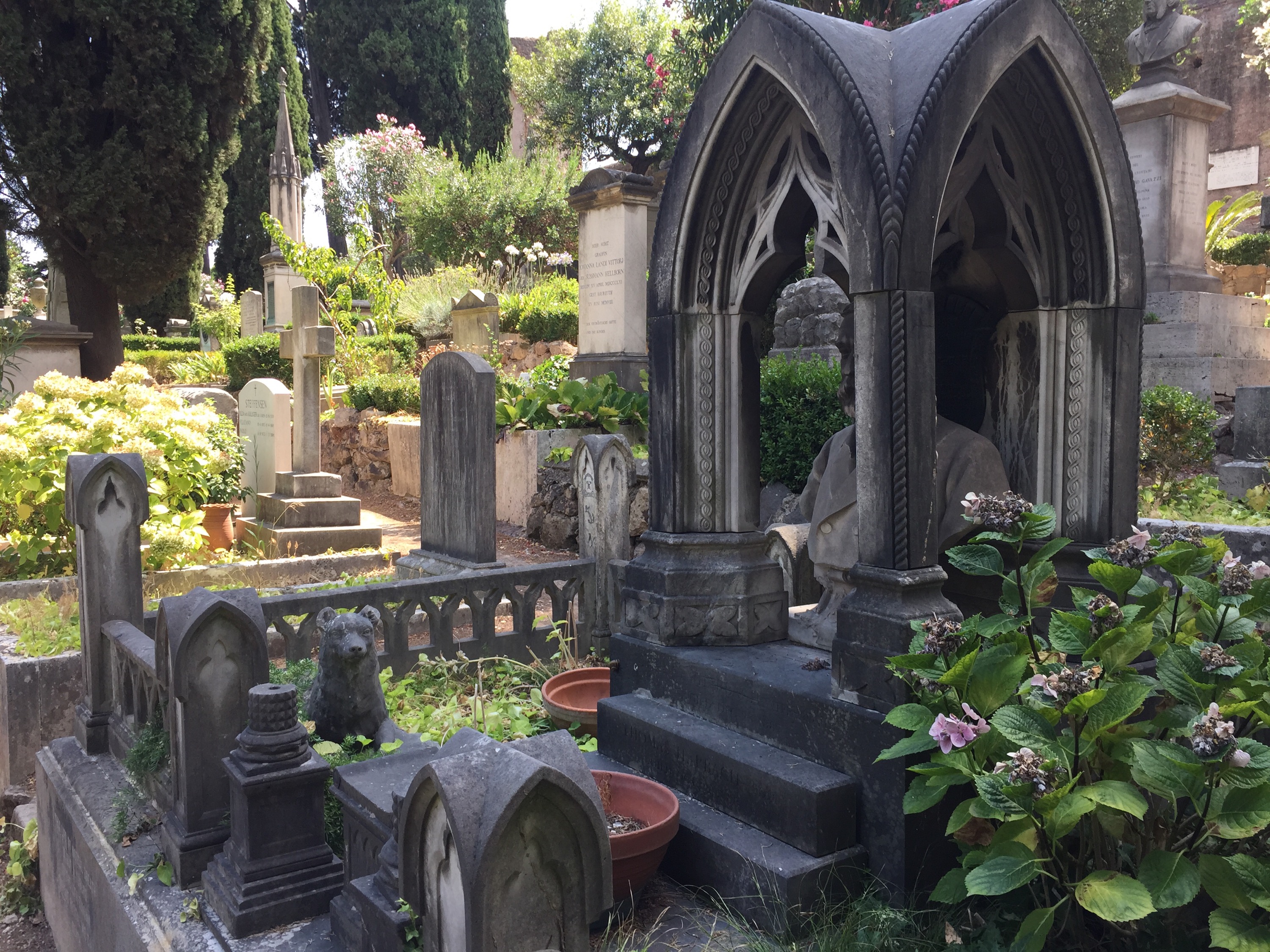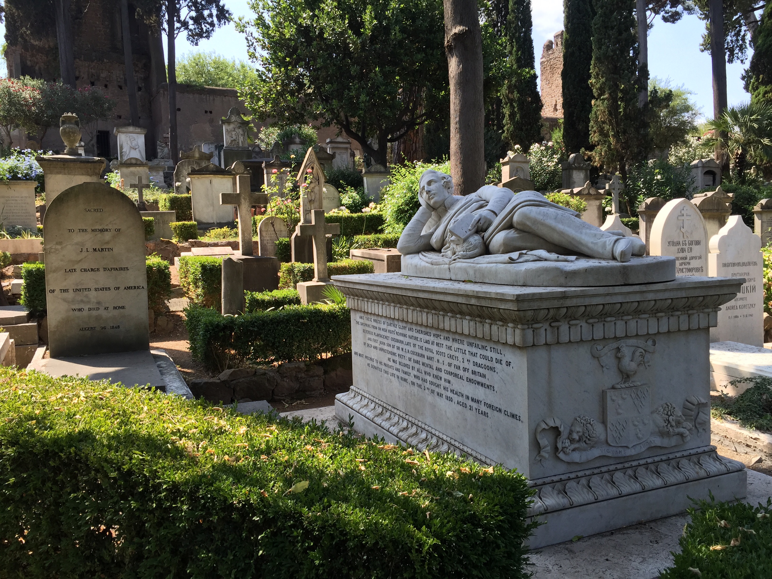 Behind these, alongside the ancient Autelian Wall that Mark’s the Cemetery’s border, is the tomb of Shelley.