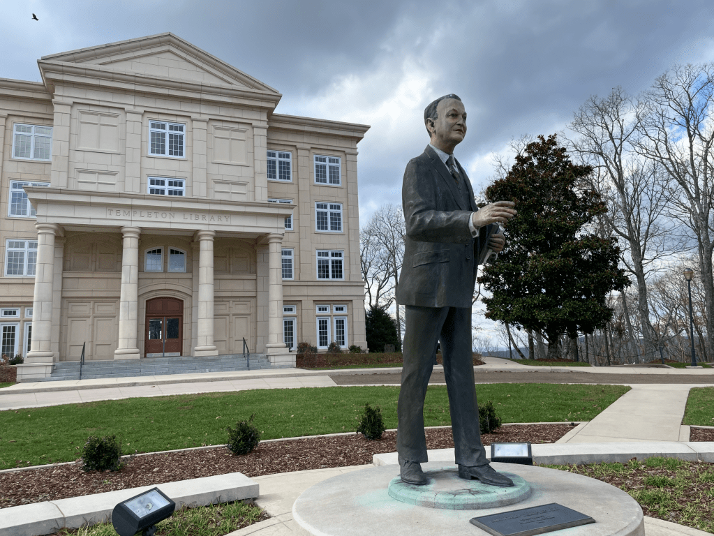 It is not a particularly unique opinion to think poorly of the statue of Sir John Templeton at the Templeton Library at the far edge of Sewanee, Tennessee. Atlas Obscura calls it “eerily lifelike.” I suspect you could find people who would call it weird, creepy, or bizarre– opinions I myself hold, although, in recent years, I’ve (sort of) revised my opinion. The fact that classical statues were polychrome, originally difficult to accept, has grown more familiar with each passing year, and the informative on-line exhibition, The Gods in Color, has made it easier to see how the ancients intended their sculpture to look.